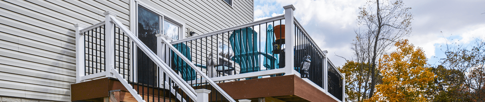 New deck with Trex decking and vinyl railing. New patio and retaining wall.